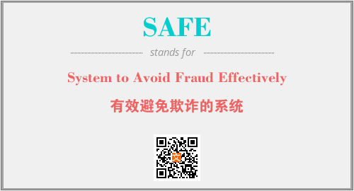 英文缩略词“SAFE”经常作为“System to Avoid Fraud Effectively”的英文缩写来使用,中文表示:“有效避免欺诈的系统”。本文将详细介绍英文缩写词SAFE所代表英文单词,其对应的中文拼音、详细解释以及在英语中的流行度。此外,还有关于缩略词SAFE的分类、应用领域及相关应用示例等。