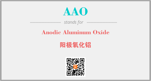 上述内容是“Anodic Aluminum Oxide”作为“AAO”的缩写,解释为“阳极氧化铝”时的信息,以及英文缩略词AAO所代表的英文单词,其对应的中文拼音、详细解释以及在英文中的流行度和相关分类、应用领域及应用示例等。