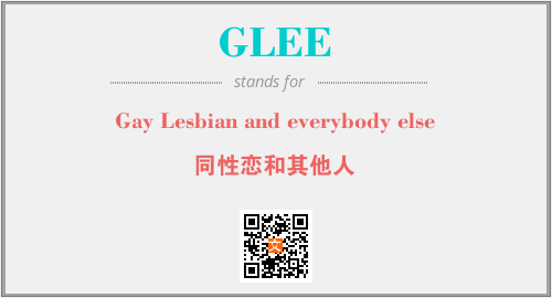 上述内容是“Gay Lesbian and everybody else”作为“GLEE”的缩写,解释为“同性恋和其他人”时的信息,以及英文缩略词GLEE所代表的英文单词,其对应的中文拼音、详细解释以及在英文中的流行度和相关分类、应用领域及应用示例等。