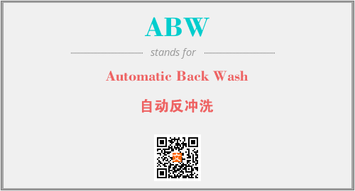 英文缩略词“ABW”经常作为“Automatic Back Wash”的英文缩写来使用,中文表示:“自动反冲洗”。本文将详细介绍英文缩写词ABW所代表英文单词,其对应的中文拼音、详细解释以及在英语中的流行度。此外,还有关于缩略词ABW的分类、应用领域及相关应用示例等。