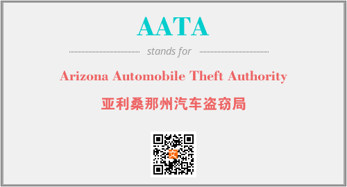 上述内容是“Arizona Automobile Theft Authority”作为“AATA”的缩写,解释为“亚利桑那州汽车盗窃局”时的信息,以及英文缩略词AATA所代表的英文单词,其对应的中文拼音、详细解释以及在英文中的流行度和相关分类、应用领域及应用示例等。
