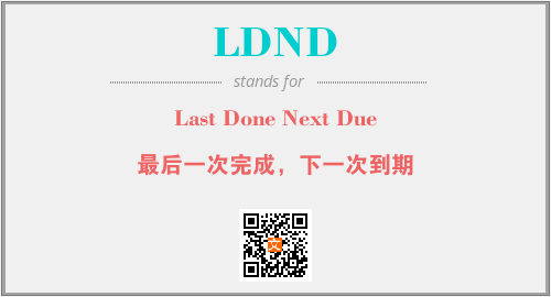 以上为Last Done Next Due英文缩略词LDND的中文解释,以及该英文缩写在英语的流行度、分类和应用领域方面的信息。