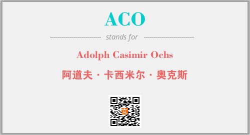 英文缩略词“ACO”经常作为“Adolph Casimir Ochs”的英文缩写来使用,中文表示:“阿道夫·卡西米尔·奥克斯”。本文将详细介绍英文缩写词ACO所代表英文单词,其对应的中文拼音、详细解释以及在英语中的流行度。此外,还有关于缩略词ACO的分类、应用领域及相关应用示例等。