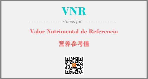 上述内容是“Valor Nutrimental de Referencia”作为“VNR”的缩写,解释为“营养参考值”时的信息,以及英文缩略词VNR所代表的英文单词,其对应的中文拼音、详细解释以及在英文中的流行度和相关分类、应用领域及应用示例等。