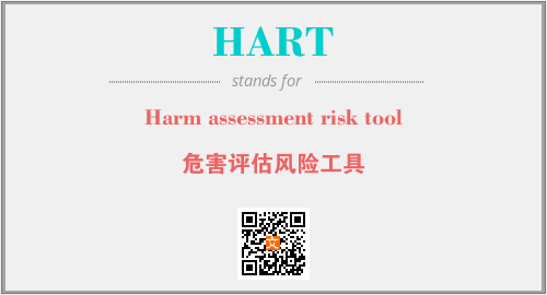 上述内容是“Harm assessment risk tool”作为“HART”的缩写,解释为“危害评估风险工具”时的信息,以及英文缩略词HART所代表的英文单词,其对应的中文拼音、详细解释以及在英文中的流行度和相关分类、应用领域及应用示例等。