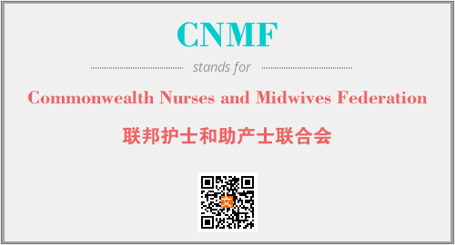 上述内容是“Commonwealth Nurses and Midwives Federation”作为“CNMF”的缩写,解释为“联邦护士和助产士联合会”时的信息,以及英文缩略词CNMF所代表的英文单词,其对应的中文拼音、详细解释以及在英文中的流行度和相关分类、应用领域及应用示例等。