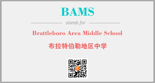 上述内容是“Brattleboro Area Middle School”作为“BAMS”的缩写,解释为“布拉特伯勒地区中学”时的信息,以及英文缩略词BAMS所代表的英文单词,其对应的中文拼音、详细解释以及在英文中的流行度和相关分类、应用领域及应用示例等。