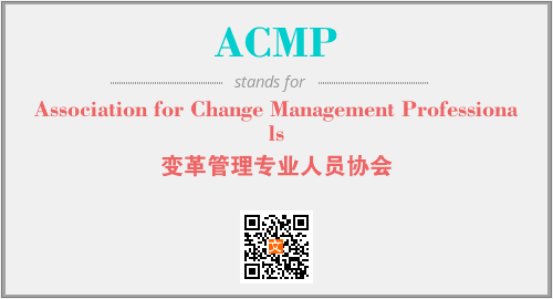 英文缩略词“ACMP”经常作为“Association for Change Management Professionals”的英文缩写来使用,中文表示:“变革管理专业人员协会”。本文将详细介绍英文缩写词ACMP所代表英文单词,其对应的中文拼音、详细解释以及在英语中的流行度。此外,还有关于缩略词ACMP的分类、应用领域及相关应用示例等。