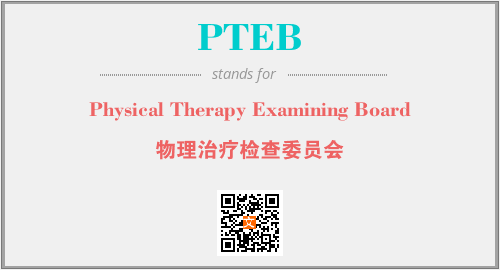 上述内容是“Physical Therapy Examining Board”作为“PTEB”的缩写,解释为“物理治疗检查委员会”时的信息,以及英文缩略词PTEB所代表的英文单词,其对应的中文拼音、详细解释以及在英文中的流行度和相关分类、应用领域及应用示例等。