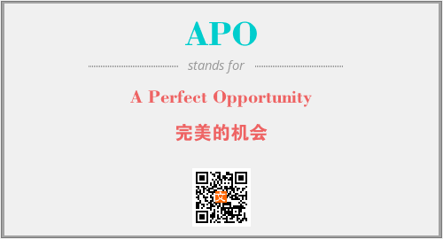 以上为A Perfect Opportunity英文缩略词APO的中文解释,以及该英文缩写在英语的流行度、分类和应用领域方面的信息。