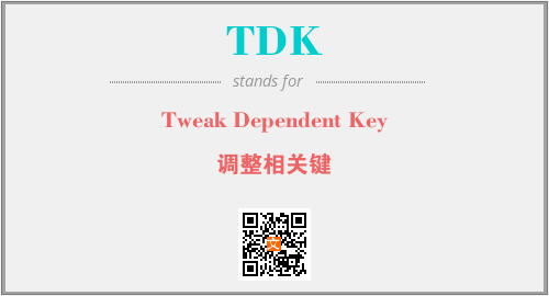 英文缩略词“TDK”经常作为“Tweak Dependent Key”的英文缩写来使用,中文表示:“调整相关键”。本文将详细介绍英文缩写词TDK所代表英文单词,其对应的中文拼音、详细解释以及在英语中的流行度。此外,还有关于缩略词TDK的分类、应用领域及相关应用示例等。