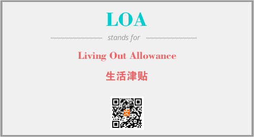 上述内容是“Living Out Allowance”作为“LOA”的缩写,解释为“生活津贴”时的信息,以及英文缩略词LOA所代表的英文单词,其对应的中文拼音、详细解释以及在英文中的流行度和相关分类、应用领域及应用示例等。