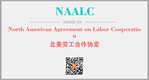 上述内容是“North American Agreement on Labor Cooperation”作为“NAALC”的缩写,解释为“北美劳工合作协定”时的信息,以及英文缩略词NAALC所代表的英文单词,其对应的中文拼音、详细解释以及在英文中的流行度和相关分类、应用领域及应用示例等。
