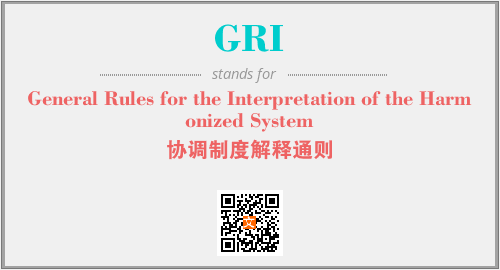英文缩略词“GRI”经常作为“General Rules for the Interpretation of the Harmonized System”的英文缩写来使用,中文表示:“协调制度解释通则”。本文将详细介绍英文缩写词GRI所代表英文单词,其对应的中文拼音、详细解释以及在英语中的流行度。此外,还有关于缩略词GRI的分类、应用领域及相关应用示例等。