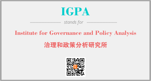 上述内容是“Institute for Governance and Policy Analysis”作为“IGPA”的缩写,解释为“治理和政策分析研究所”时的信息,以及英文缩略词IGPA所代表的英文单词,其对应的中文拼音、详细解释以及在英文中的流行度和相关分类、应用领域及应用示例等。