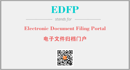 英文缩略词“EDFP”经常作为“Electronic Document Filing Portal”的英文缩写来使用,中文表示:“电子文件归档门户”。本文将详细介绍英文缩写词EDFP所代表英文单词,其对应的中文拼音、详细解释以及在英语中的流行度。此外,还有关于缩略词EDFP的分类、应用领域及相关应用示例等。