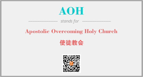 英文缩略词“AOH”经常作为“Apostolic Overcoming Holy Church”的英文缩写来使用,中文表示:“使徒教会”。本文将详细介绍英文缩写词AOH所代表英文单词,其对应的中文拼音、详细解释以及在英语中的流行度。此外,还有关于缩略词AOH的分类、应用领域及相关应用示例等。
