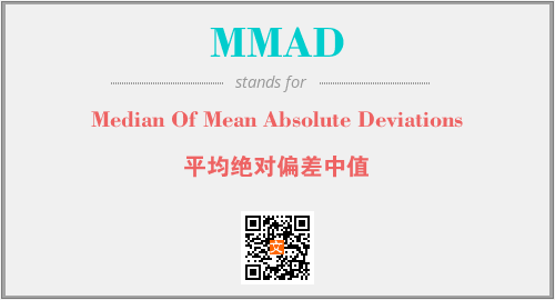 上述内容是“Median Of Mean Absolute Deviations”作为“MMAD”的缩写,解释为“平均绝对偏差中值”时的信息,以及英文缩略词MMAD所代表的英文单词,其对应的中文拼音、详细解释以及在英文中的流行度和相关分类、应用领域及应用示例等。