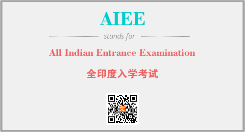 英文缩略词“AIEE”经常作为“All Indian Entrance Examination”的英文缩写来使用,中文表示:“全印度入学考试”。本文将详细介绍英文缩写词AIEE所代表英文单词,其对应的中文拼音、详细解释以及在英语中的流行度。此外,还有关于缩略词AIEE的分类、应用领域及相关应用示例等。