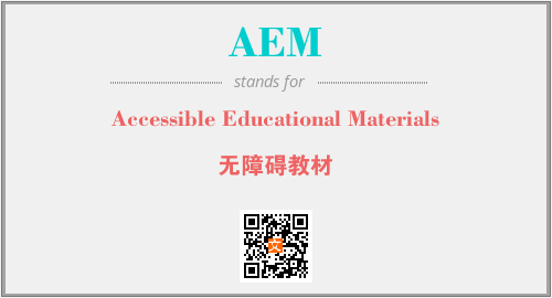 英文缩略词“AEM”经常作为“Accessible Educational Materials”的英文缩写来使用,中文表示:“无障碍教材”。本文将详细介绍英文缩写词AEM所代表英文单词,其对应的中文拼音、详细解释以及在英语中的流行度。此外,还有关于缩略词AEM的分类、应用领域及相关应用示例等。