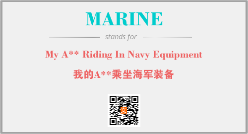 英文缩略词“MARINE”经常作为“My A** Riding In Navy Equipment”的英文缩写来使用,中文表示:“我的A**乘坐海军装备”。本文将详细介绍英文缩写词MARINE所代表英文单词,其对应的中文拼音、详细解释以及在英语中的流行度。此外,还有关于缩略词MARINE的分类、应用领域及相关应用示例等。