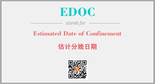 英文缩略词“EDOC”经常作为“Estimated Date of Confinement”的英文缩写来使用,中文表示:“估计分娩日期”。本文将详细介绍英文缩写词EDOC所代表英文单词,其对应的中文拼音、详细解释以及在英语中的流行度。此外,还有关于缩略词EDOC的分类、应用领域及相关应用示例等。