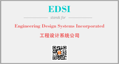 上述内容是“Engineering Design Systems Incorporated”作为“EDSI”的缩写,解释为“工程设计系统公司”时的信息,以及英文缩略词EDSI所代表的英文单词,其对应的中文拼音、详细解释以及在英文中的流行度和相关分类、应用领域及应用示例等。