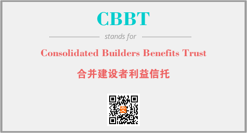 英文缩略词“CBBT”经常作为“Consolidated Builders Benefits Trust”的英文缩写来使用,中文表示:“合并建设者利益信托”。本文将详细介绍英文缩写词CBBT所代表英文单词,其对应的中文拼音、详细解释以及在英语中的流行度。此外,还有关于缩略词CBBT的分类、应用领域及相关应用示例等。