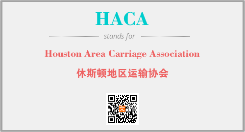 上述内容是“Houston Area Carriage Association”作为“HACA”的缩写,解释为“休斯顿地区运输协会”时的信息,以及英文缩略词HACA所代表的英文单词,其对应的中文拼音、详细解释以及在英文中的流行度和相关分类、应用领域及应用示例等。