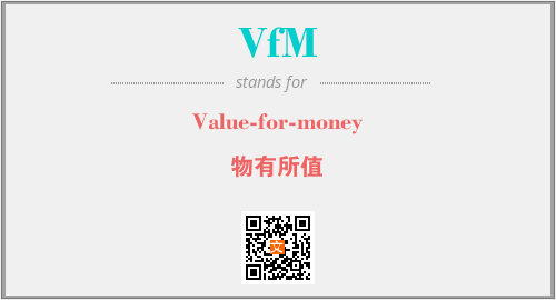 英文缩略词“VfM”经常作为“Value-for-money”的英文缩写来使用,中文表示:“物有所值”。本文将详细介绍英文缩写词VfM所代表英文单词,其对应的中文拼音、详细解释以及在英语中的流行度。此外,还有关于缩略词VfM的分类、应用领域及相关应用示例等。