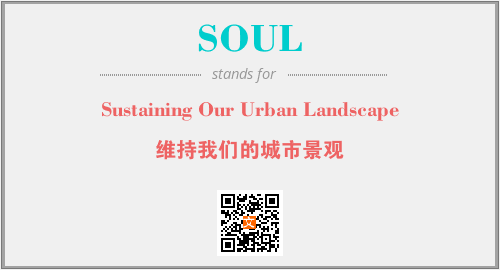 上述内容是“Sustaining Our Urban Landscape”作为“SOUL”的缩写,解释为“维持我们的城市景观”时的信息,以及英文缩略词SOUL所代表的英文单词,其对应的中文拼音、详细解释以及在英文中的流行度和相关分类、应用领域及应用示例等。