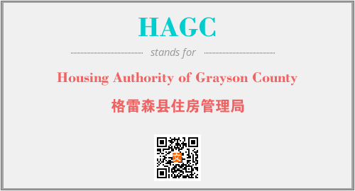上述内容是“Housing Authority of Grayson County”作为“HAGC”的缩写,解释为“格雷森县住房管理局”时的信息,以及英文缩略词HAGC所代表的英文单词,其对应的中文拼音、详细解释以及在英文中的流行度和相关分类、应用领域及应用示例等。
