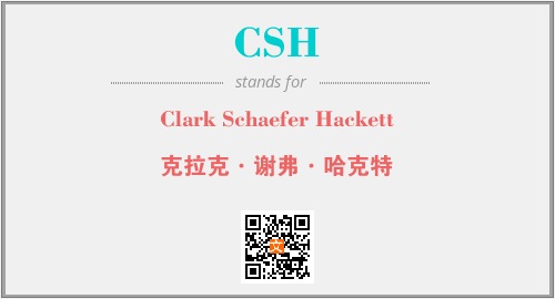 上述内容是“Clark Schaefer Hackett”作为“CSH”的缩写,解释为“克拉克·谢弗·哈克特”时的信息,以及英文缩略词CSH所代表的英文单词,其对应的中文拼音、详细解释以及在英文中的流行度和相关分类、应用领域及应用示例等。