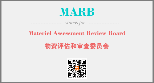 英文缩略词“MARB”经常作为“Materiel Assessment Review Board”的英文缩写来使用,中文表示:“物资评估和审查委员会”。本文将详细介绍英文缩写词MARB所代表英文单词,其对应的中文拼音、详细解释以及在英语中的流行度。此外,还有关于缩略词MARB的分类、应用领域及相关应用示例等。