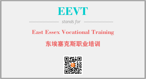上述内容是“East Essex Vocational Training”作为“EEVT”的缩写,解释为“东埃塞克斯职业培训”时的信息,以及英文缩略词EEVT所代表的英文单词,其对应的中文拼音、详细解释以及在英文中的流行度和相关分类、应用领域及应用示例等。