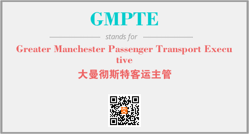 上述内容是“Greater Manchester Passenger Transport Executive”作为“GMPTE”的缩写,解释为“大曼彻斯特客运主管”时的信息,以及英文缩略词GMPTE所代表的英文单词,其对应的中文拼音、详细解释以及在英文中的流行度和相关分类、应用领域及应用示例等。