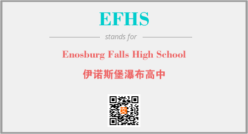 英文缩略词“EFHS”经常作为“Enosburg Falls High School”的英文缩写来使用,中文表示:“伊诺斯堡瀑布高中”。本文将详细介绍英文缩写词EFHS所代表英文单词,其对应的中文拼音、详细解释以及在英语中的流行度。此外,还有关于缩略词EFHS的分类、应用领域及相关应用示例等。