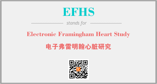 上述内容是“Electronic Framingham Heart Study”作为“EFHS”的缩写,解释为“电子弗雷明翰心脏研究”时的信息,以及英文缩略词EFHS所代表的英文单词,其对应的中文拼音、详细解释以及在英文中的流行度和相关分类、应用领域及应用示例等。