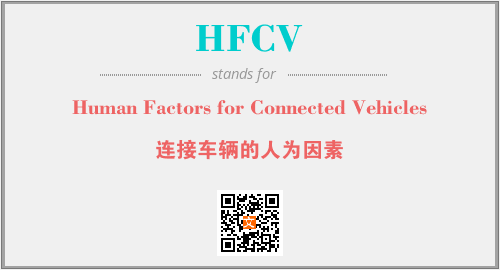 以上为Human Factors for Connected Vehicles英文缩略词HFCV的中文解释,以及该英文缩写在英语的流行度、分类和应用领域方面的信息。
