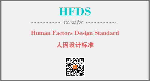 上述内容是“Human Factors Design Standard”作为“HFDS”的缩写,解释为“人因设计标准”时的信息,以及英文缩略词HFDS所代表的英文单词,其对应的中文拼音、详细解释以及在英文中的流行度和相关分类、应用领域及应用示例等。