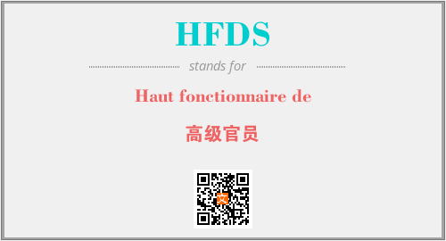 上述内容是“Haut fonctionnaire de”作为“HFDS”的缩写,解释为“高级官员”时的信息,以及英文缩略词HFDS所代表的英文单词,其对应的中文拼音、详细解释以及在英文中的流行度和相关分类、应用领域及应用示例等。