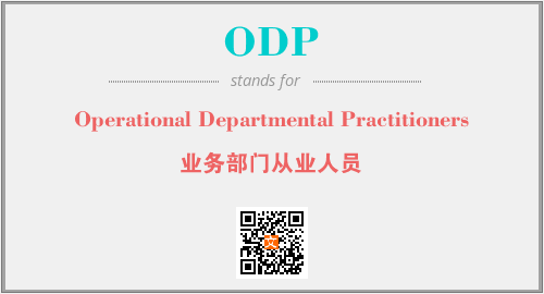英文缩略词“ODP”经常作为“Operational Departmental Practitioners”的英文缩写来使用,中文表示:“业务部门从业人员”。本文将详细介绍英文缩写词ODP所代表英文单词,其对应的中文拼音、详细解释以及在英语中的流行度。此外,还有关于缩略词ODP的分类、应用领域及相关应用示例等。