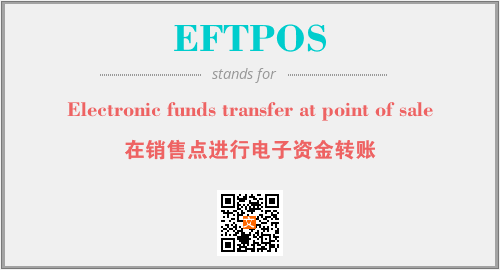 上述内容是“Electronic funds transfer at point of sale”作为“EFTPOS”的缩写,解释为“在销售点进行电子资金转账”时的信息,以及英文缩略词EFTPOS所代表的英文单词,其对应的中文拼音、详细解释以及在英文中的流行度和相关分类、应用领域及应用示例等。