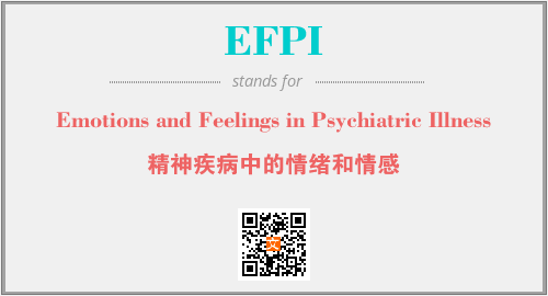 上述内容是“Emotions and Feelings in Psychiatric Illness”作为“EFPI”的缩写,解释为“精神疾病中的情绪和情感”时的信息,以及英文缩略词EFPI所代表的英文单词,其对应的中文拼音、详细解释以及在英文中的流行度和相关分类、应用领域及应用示例等。
