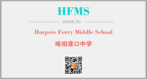 上述内容是“Harpers Ferry Middle School”作为“HFMS”的缩写,解释为“哈珀渡口中学”时的信息,以及英文缩略词HFMS所代表的英文单词,其对应的中文拼音、详细解释以及在英文中的流行度和相关分类、应用领域及应用示例等。