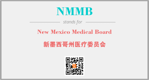 上述内容是“New Mexico Medical Board”作为“NMMB”的缩写,解释为“新墨西哥州医疗委员会”时的信息,以及英文缩略词NMMB所代表的英文单词,其对应的中文拼音、详细解释以及在英文中的流行度和相关分类、应用领域及应用示例等。