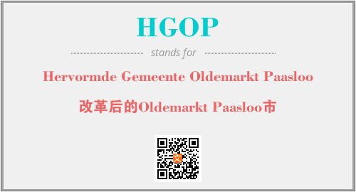 上述内容是“Hervormde Gemeente Oldemarkt Paasloo”作为“HGOP”的缩写,解释为“改革后的Oldemarkt Paasloo市”时的信息,以及英文缩略词HGOP所代表的英文单词,其对应的中文拼音、详细解释以及在英文中的流行度和相关分类、应用领域及应用示例等。