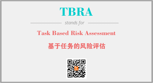 上述内容是“Task Based Risk Assessment”作为“TBRA”的缩写,解释为“基于任务的风险评估”时的信息,以及英文缩略词TBRA所代表的英文单词,其对应的中文拼音、详细解释以及在英文中的流行度和相关分类、应用领域及应用示例等。