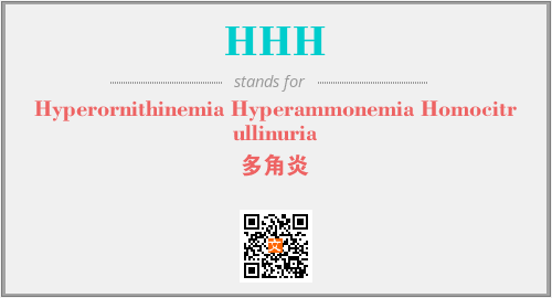 上述内容是“Hyperornithinemia Hyperammonemia Homocitrullinuria”作为“HHH”的缩写,解释为“多角炎”时的信息,以及英文缩略词HHH所代表的英文单词,其对应的中文拼音、详细解释以及在英文中的流行度和相关分类、应用领域及应用示例等。