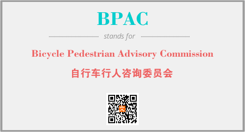 英文缩略词“BPAC”经常作为“Bicycle Pedestrian Advisory Commission”的英文缩写来使用,中文表示:“自行车行人咨询委员会”。本文将详细介绍英文缩写词BPAC所代表英文单词,其对应的中文拼音、详细解释以及在英语中的流行度。此外,还有关于缩略词BPAC的分类、应用领域及相关应用示例等。